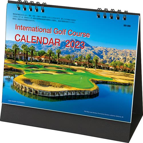 【名入れ100冊】 卓上カレンダー 2023年 卓上スタンド 世界のゴルフ場 MH-806 名入れ 令和5年 送料無料 社名 団体名 自社印刷 部 小ロット 名入れ無し 無印 日本 挨拶 開業 年賀 粗品 記念品 参加賞 イベント 贈答 ギフト【smtb-kd】