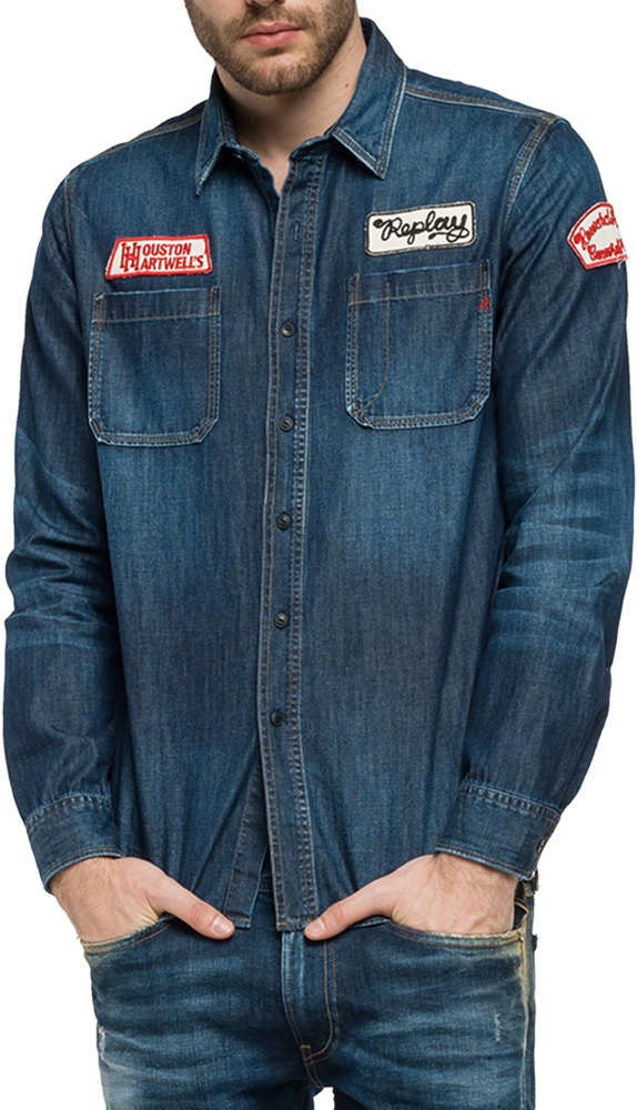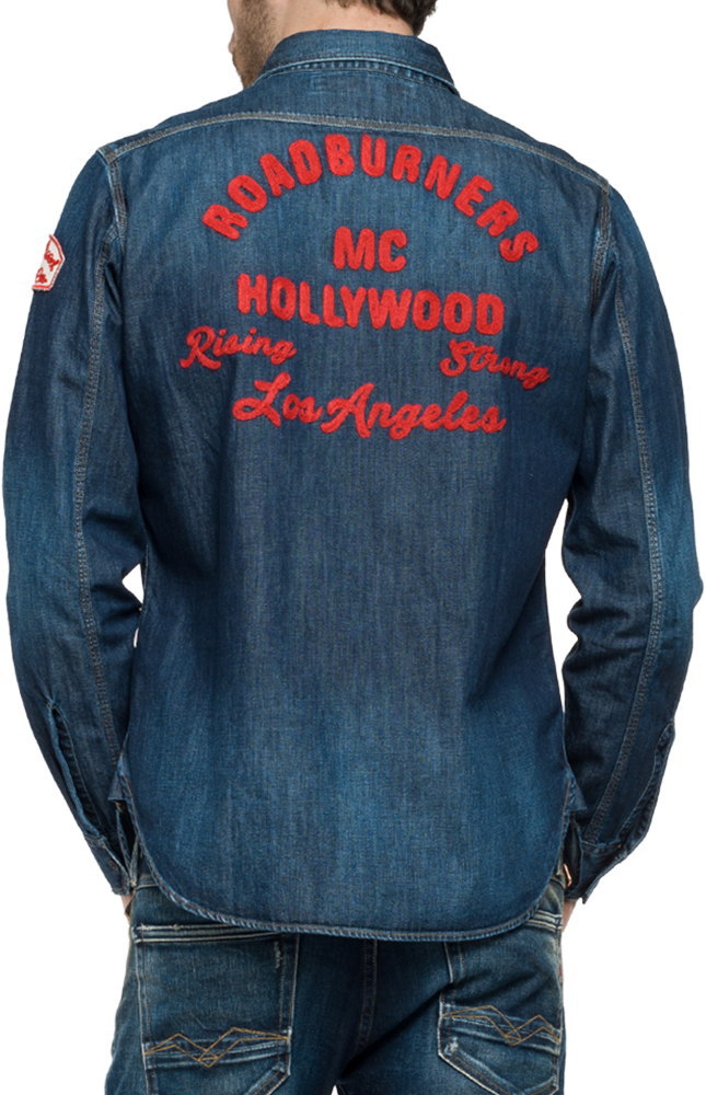 REPLAY/リプレイ M4975E BLUE DENIM SHIRT ワッペンロゴ&刺繍入り、デニムシャツ BLUE DENIM(ブルーデニム)