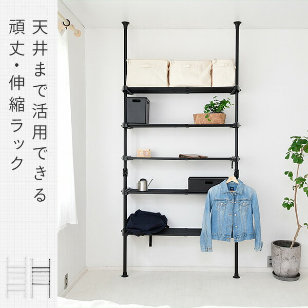 頑丈 伸縮 突っ張り ラック 5段 WJS-775M 幅72-113 奥行32 高さ200-280/140-188 cmゴミ箱上ラック 洗濯機上ラック 冷蔵庫上 ラック 突っ張り 棚 突っ張り棚 突っ張りラック ラック シェルフ ホワイト ブラック 白 山善 YAMAZEN 【送料無料】