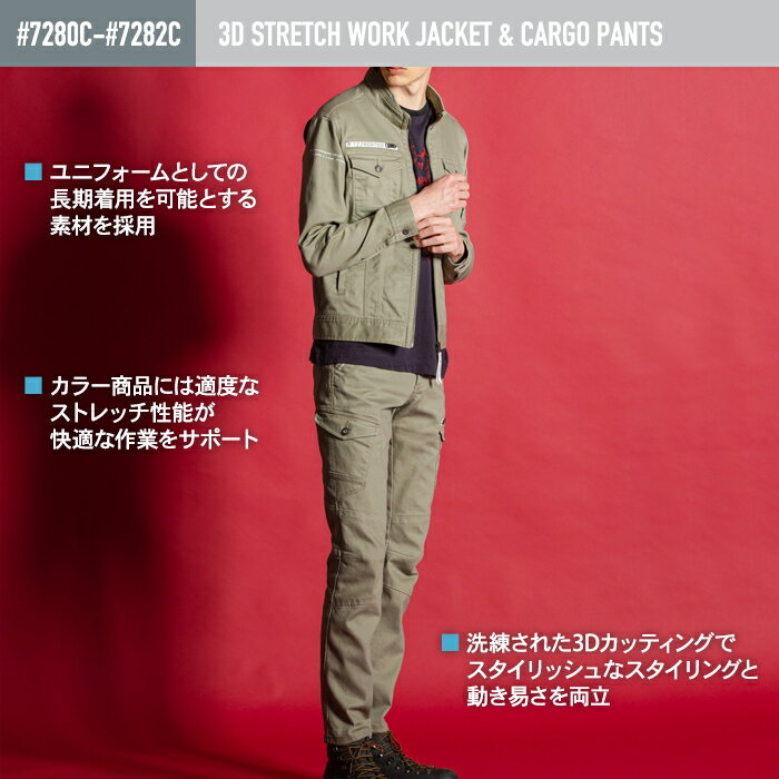 7280C ストレッチ3Dツイルワークジャケット 7282C ストレッチ3Dツイルカーゴパンツ 商品は全てメーカーよりお取り寄せ致します。