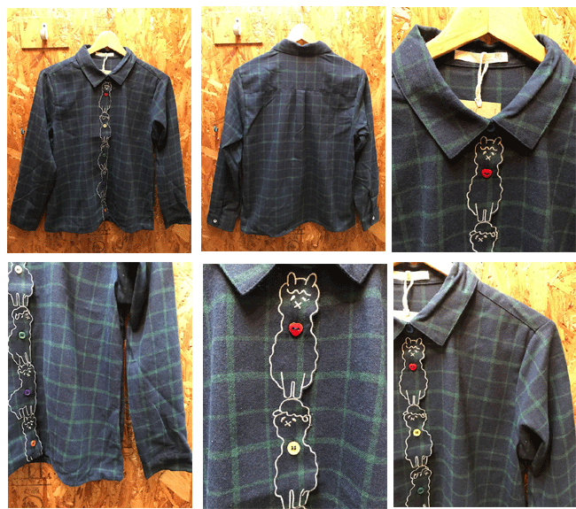 可愛い! アルパカ刺繍シャツ ★ アルパカシャツ ブラウス アルパカ柄ブラウス 可愛いきアルパカブラウス 可愛いアルパカ柄シャツ アルパカ
