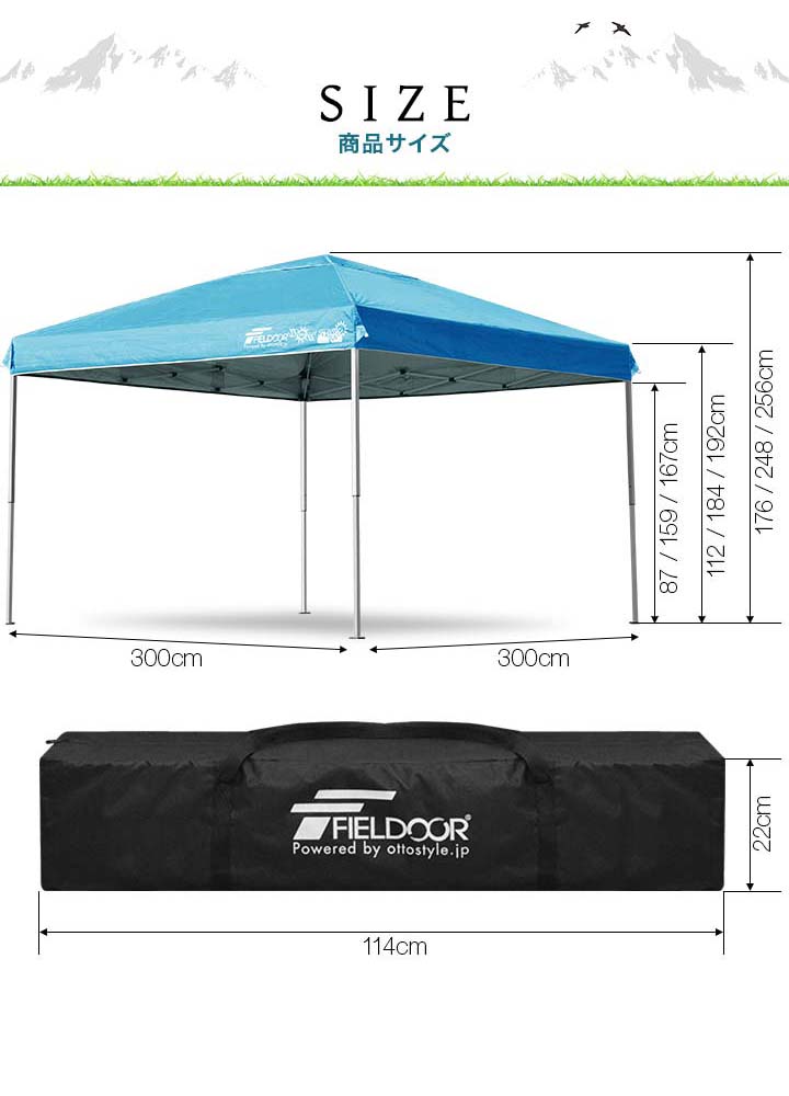 ワンタッチタープテント 3m×3m サイドシート2枚付 横幕セット 頑丈 スチール テント タープ 300 3.0m ワンタッチ ワンタッチテント ワンタッチタープ 大型 UV加工 撥水 ベンチレーション 日よけ イベント アウトドア キャンプ FIELDOOR 1年保証 ●[送料無料]