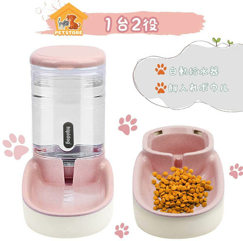 自動給水器 ペット給水器 3.8L 大容量 1台2役 ペットボトル 餌入れボウル エサやり ウォーターディスペンサー ペット用品