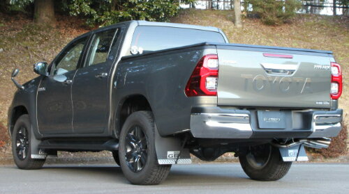 【 ハイラックス 型式 3DF-GUN125 年式 R2/8- グレード Z/X エンジン形式 2GD-FTV ※スペアタイヤは付属ブラケットで要移設 ≪ テール 105x90Φ スクエア形状 左右計2本出し仕様 ≫】【 ガナドールマフラー 】【 GDE155C 】