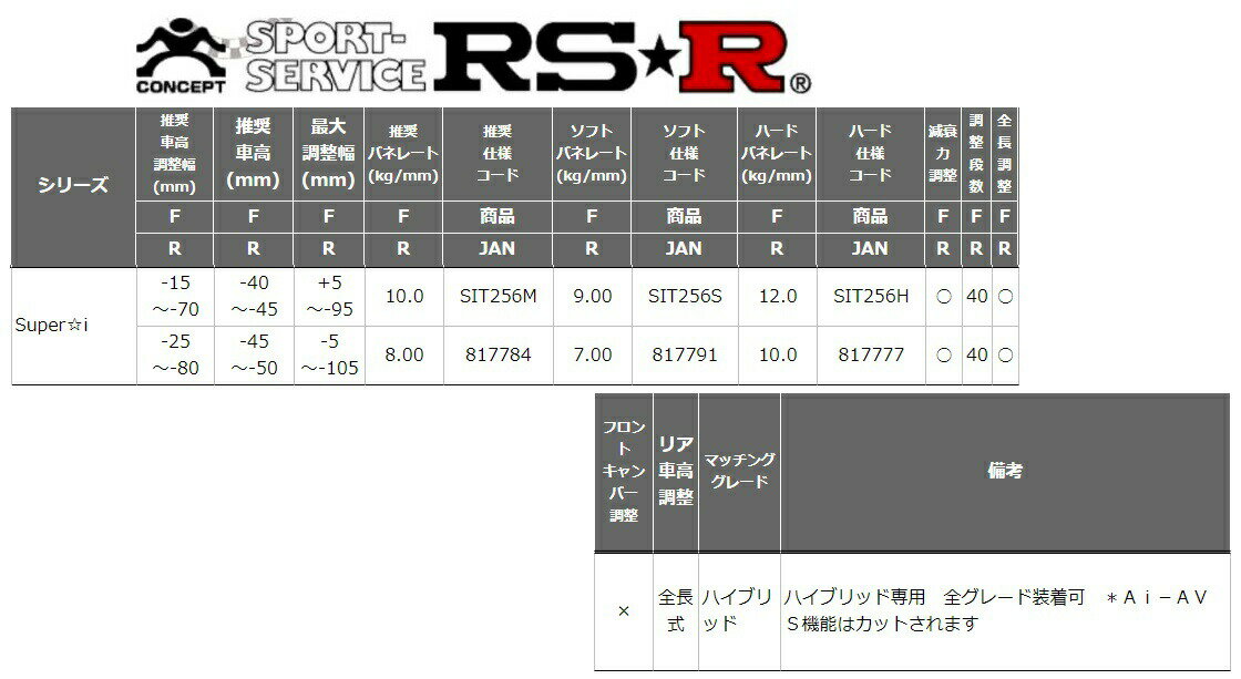 RSR クラウンハイブリッド GWS204 車高調 リア車高調整:全長式 SIT256M RS-R Super☆i スーパーi