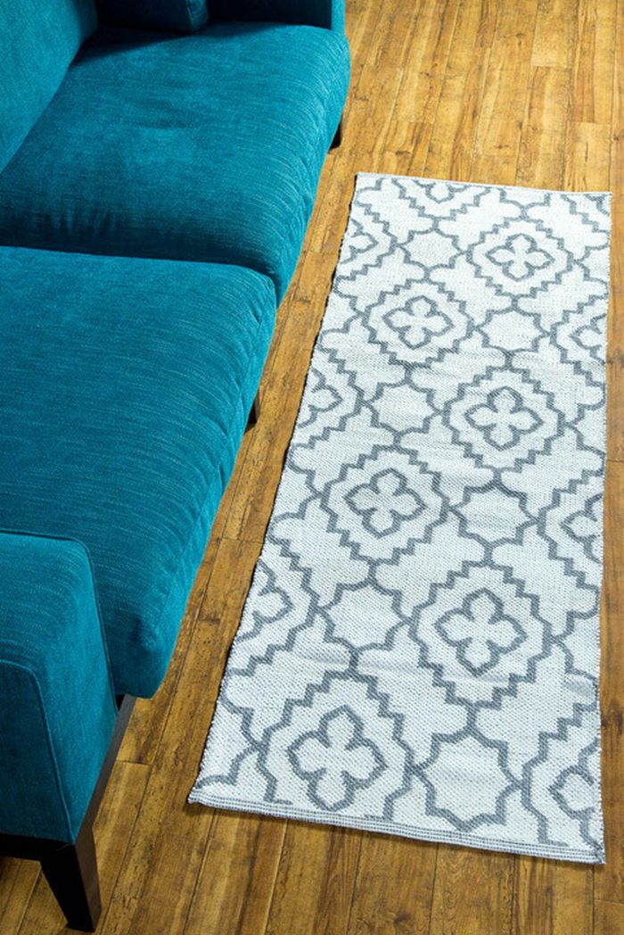 キリム リバーシブル ラグ ラグマット 平織り 絨毯 プラスチック PERICON 60x90cm グレー&ホワイト おしゃれ 輸入 【キリム】 【小さめ】 【玄関マット】