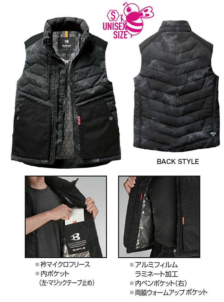 バートル 防寒ベスト BURTLE ベスト 5264 作業着 防寒 作業服 迷彩 カモフラ 人気 裏アルミ ジップアップ 撥水 防寒 カッコイイ メンズ レディース ユニセックス おしゃれ アウトドア 釣り ゴルフ