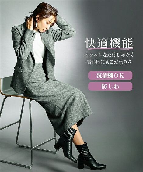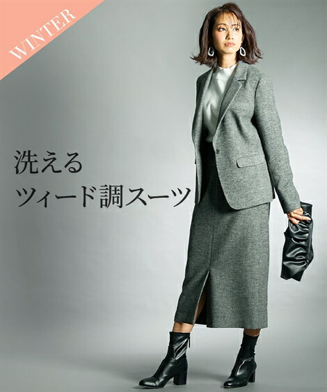 スーツ スカート レディース 洗える ツィード調 テーラード ジャケット + ロング丈 ジャンパー ライトグレー系 S/M/L ニッセン nissen