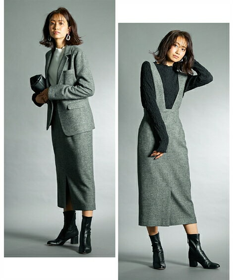カットツイードタイトスカート [M3486] レディース ボトムス スカート ロング丈 ウエストゴム 上品 フェミニン 着回し きれいめ 大人 カジュアル ミックスツイード オフィス スリット 着回し