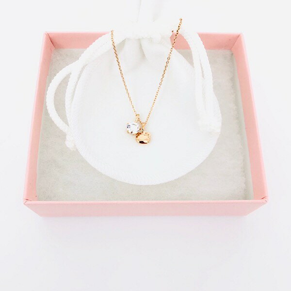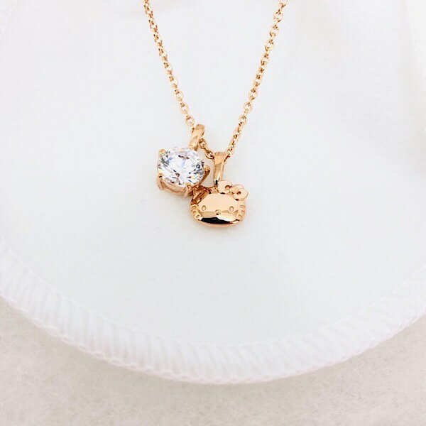 カラーはピンクゴールドです! キティとストーンが胸元をかわいく彩ってくれるペンダント。